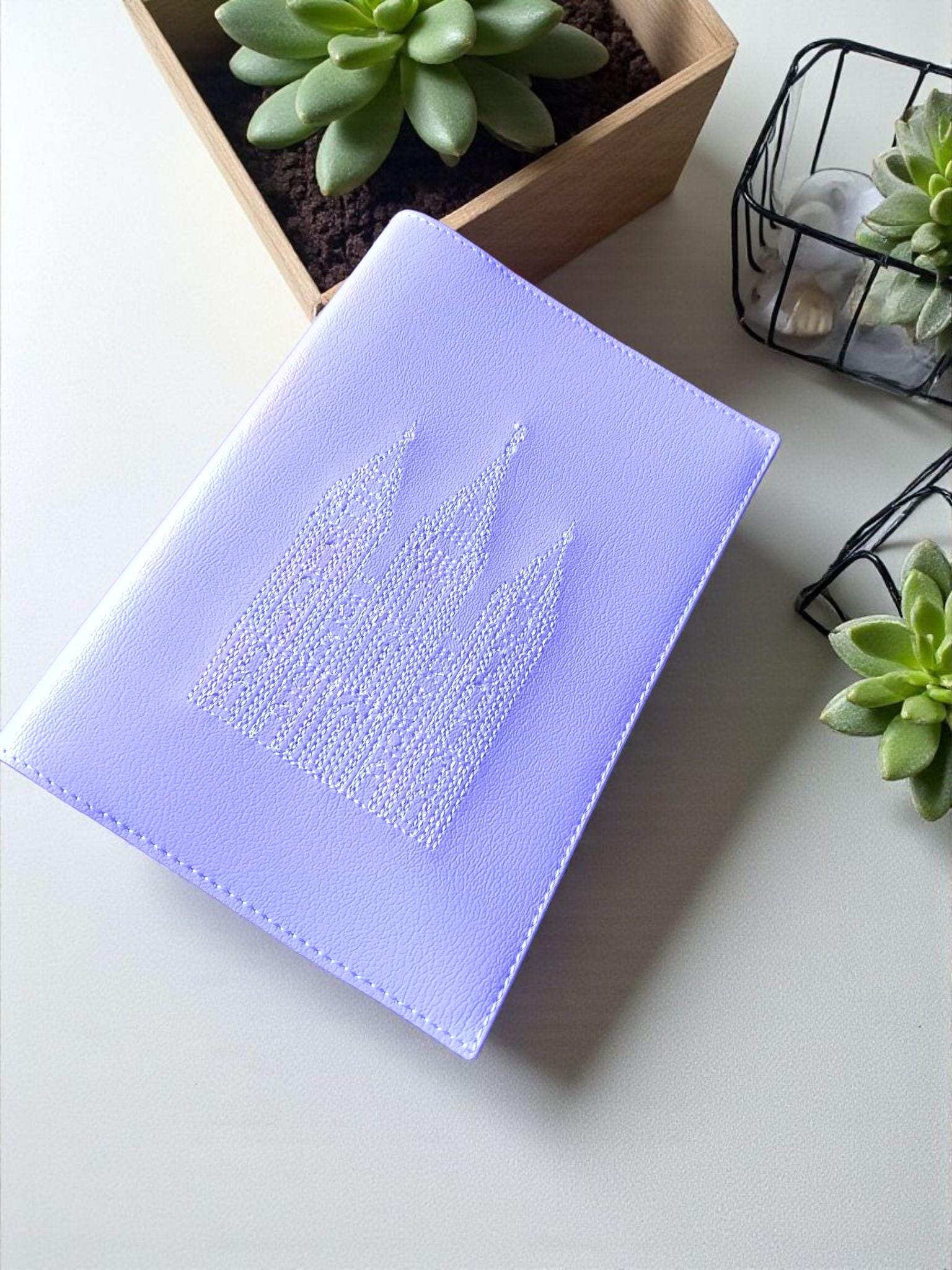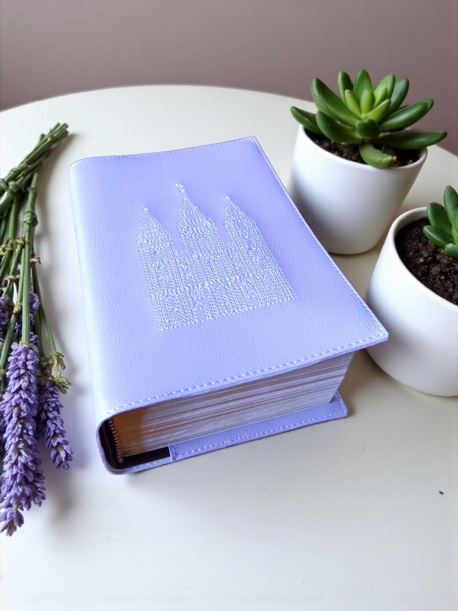 Lavender LDS Quad Scripture Slip cover: Embroidered Salt Lake Temple