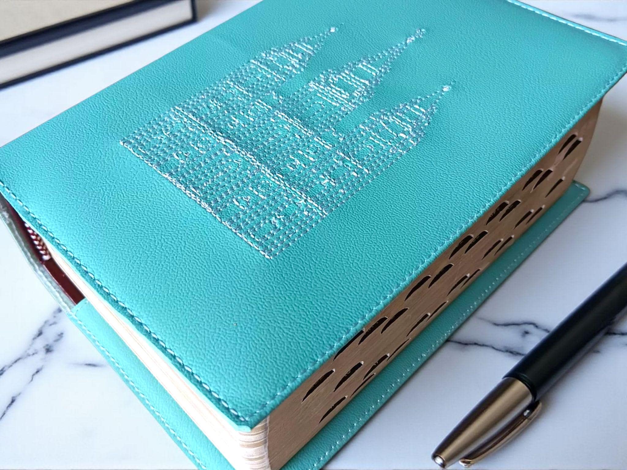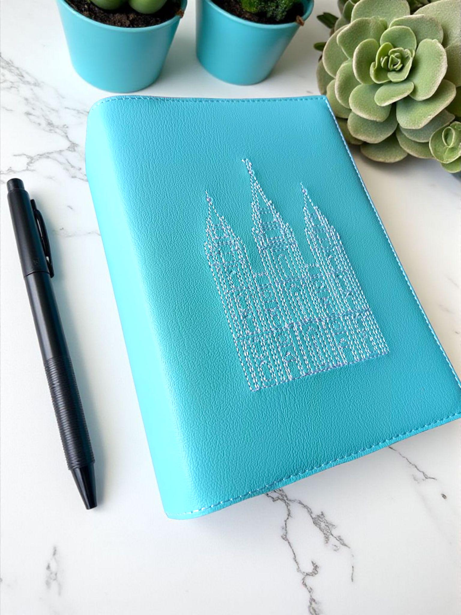 Aqua Salt Lake Temple LDS Scripture Slipcover: Simulated Leather Quad Cover